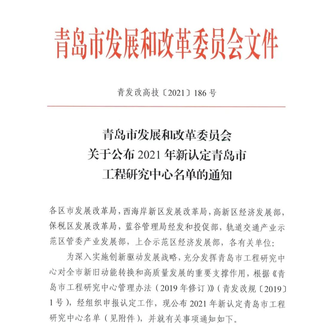 2021年認(rèn)定青島市工程研究中心名單(部分)